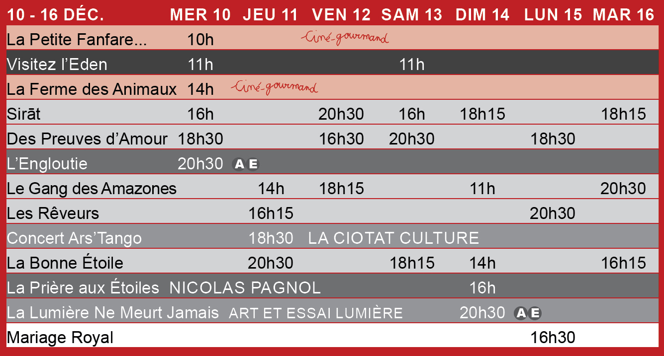 SEMAINE DU 10 AU 16 DECEMBRE 2025