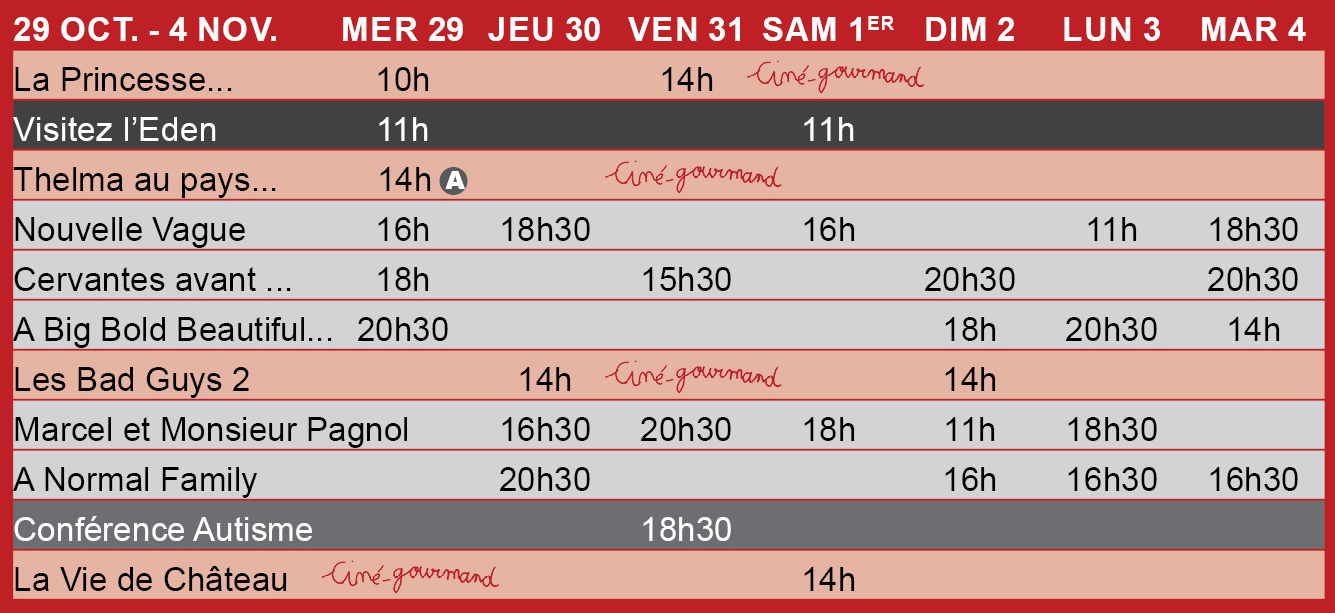 SEMAINE DU 29 OCTOBRE AU 4 NOVEMBRE 2025