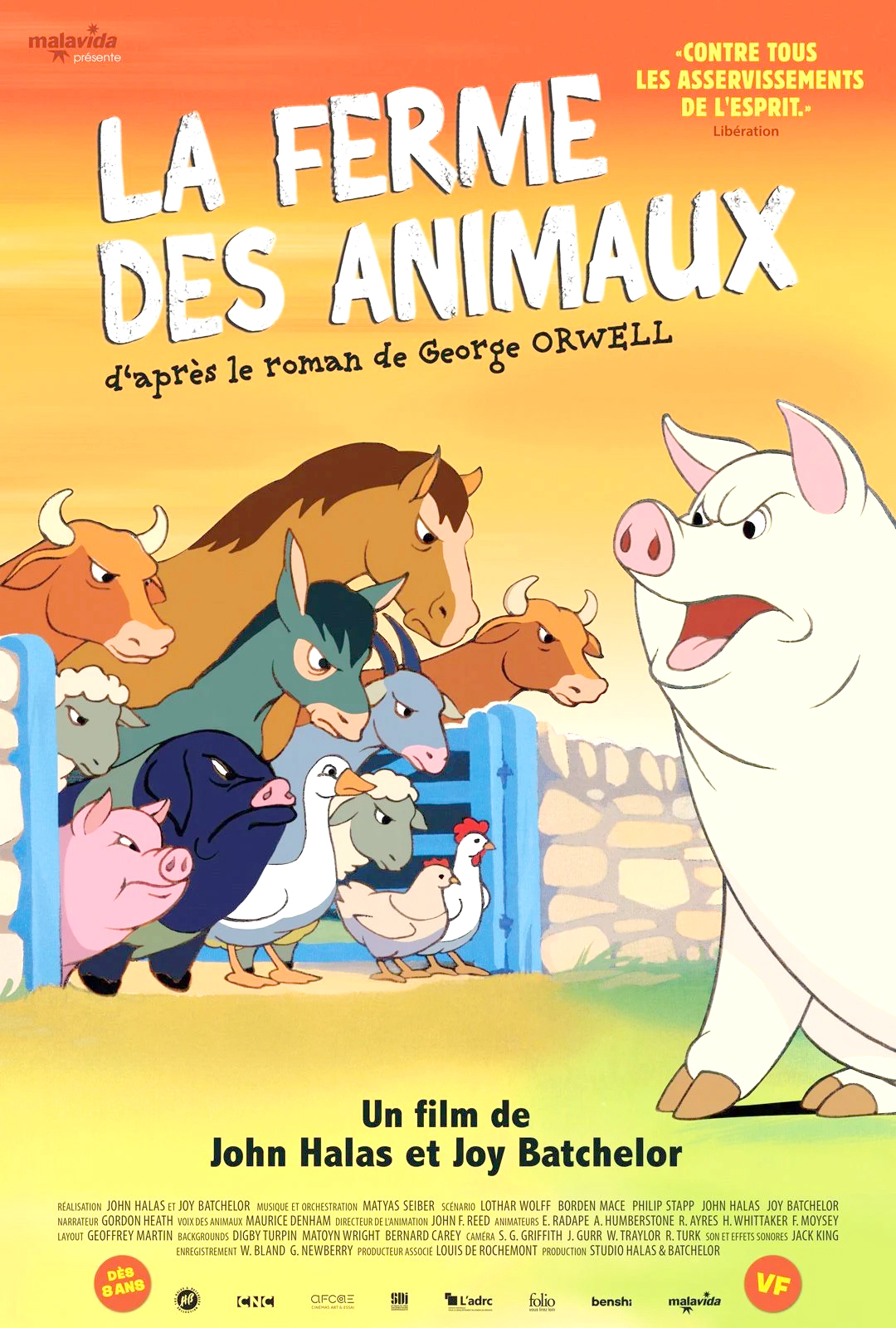 Lassés des mauvais traitements, les animaux de la Ferme du manoir se révoltent contre M. Jones, le fermier. Ils le chassent et proclament une nouvelle société où tous les animaux sont égaux. Mais quelques uns dans la ferme décident bientôt que certains sont plus égaux que d’autres… Pamphlétaire, il enchante enfants comme adultes, ce qui n’est pas des plus courants sur un sujet difficile au prime abord. Grands et petits enfants, unissez-vous !