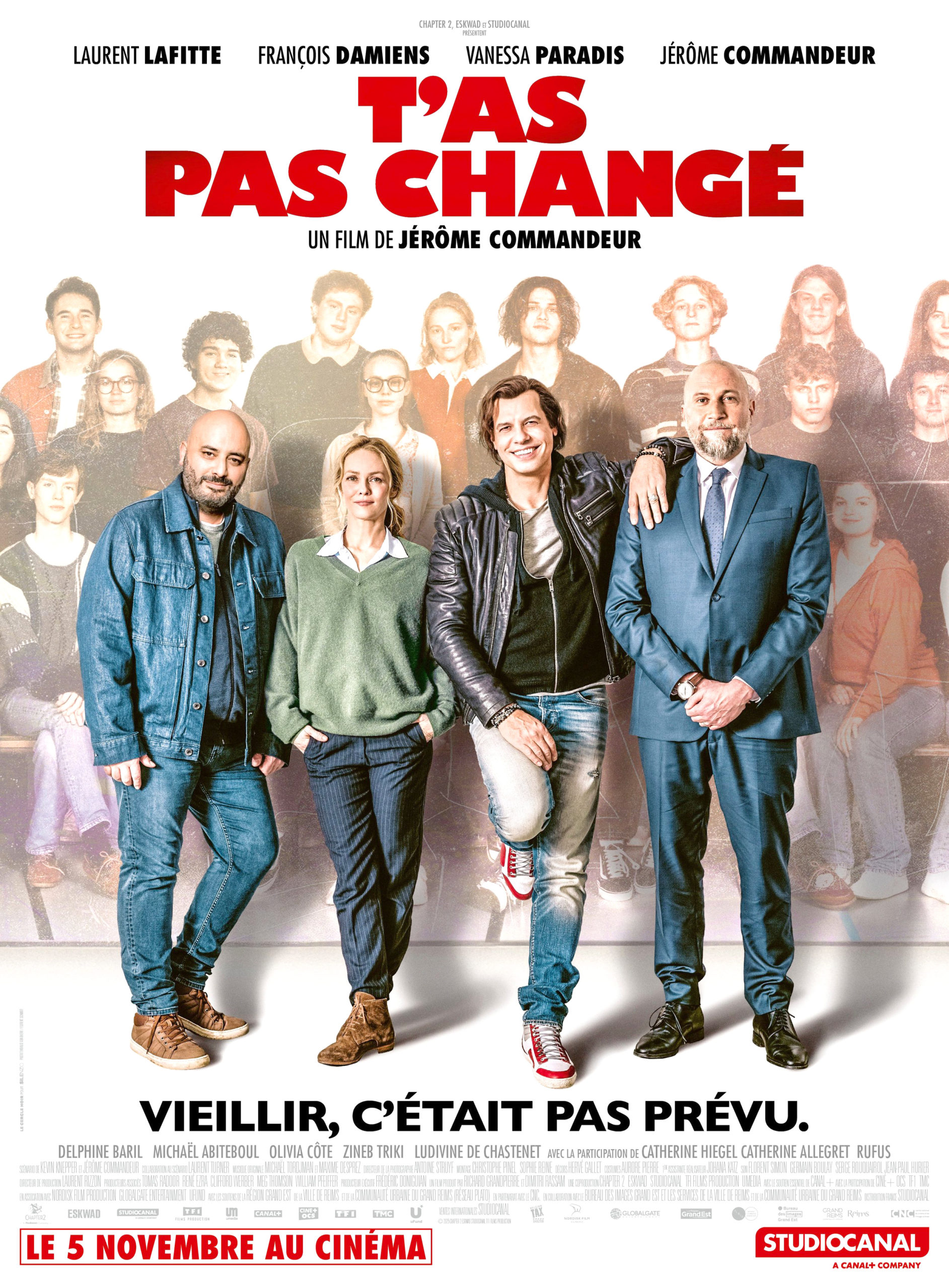 Suite à un évènement aussi loufoque que tragique, quatre anciens lycéens cabossés se télescopent et font face à leur passé. La force du groupe suffira-t-elle à les remettre droits ? Véritable déclaration d’amour aux années 1990, T’as pas Changé dresse le portrait hilarant et grinçant de ces quinquas que des retrouvailles vont bouleverser à jamais…