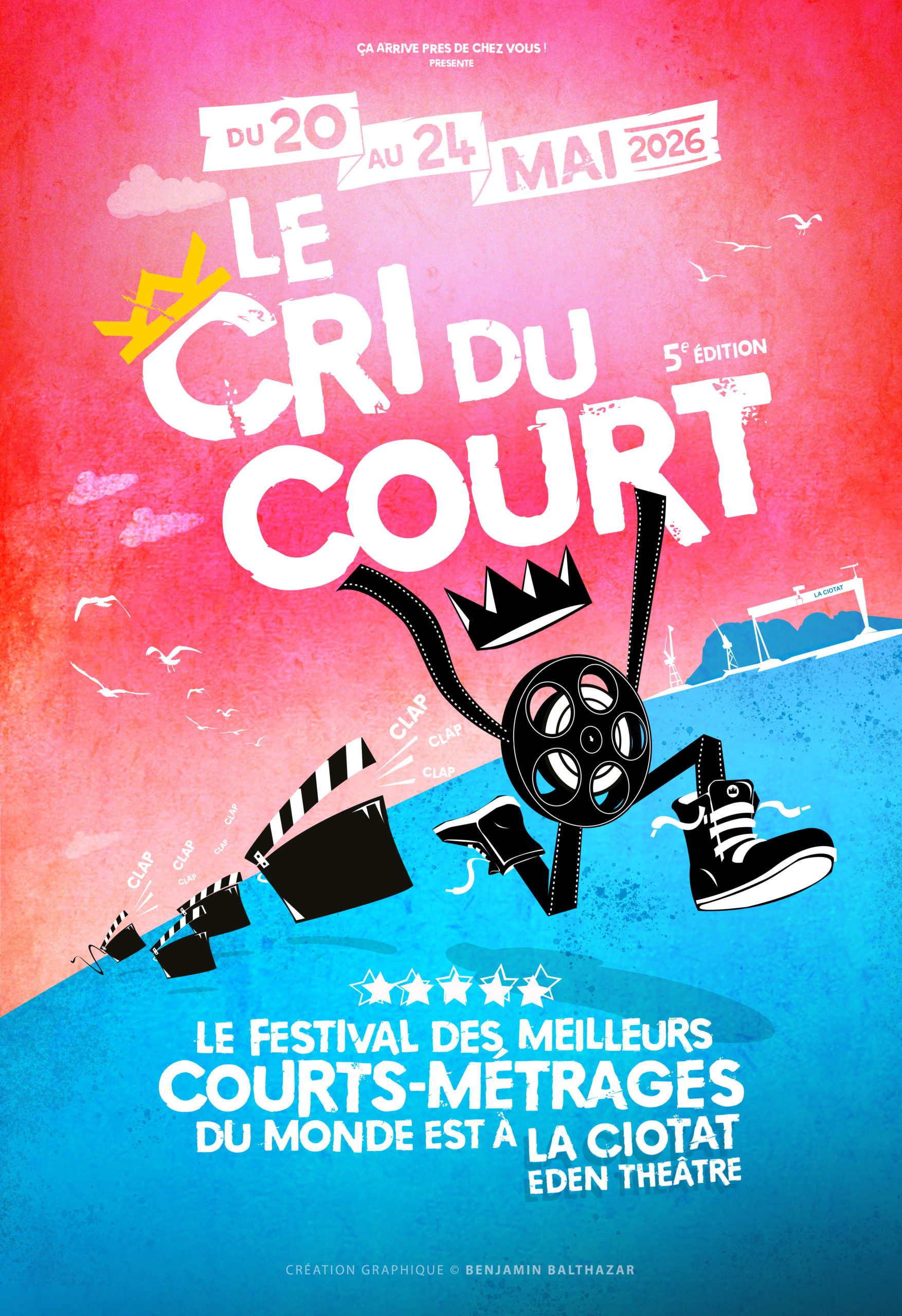 Plongez dans l’univers captivant du cinéma lors de la 5e édition du festival Le Cri du Court, organisée avec passion par l’association Ça Arrive Près de Chez Vous ! Cette année encore, notre festival vous propose de découvrir les films qui ont émus et fait vibrer les festivaliers du monde entier. Séances compétitives, rencontres, musique live… et bien plus encore. Le cinéma est né à La Ciotat. La plus ancienne salle de cinéma au monde accueille les meilleurs courts-métrages primés de l’année écoulée. La boucle est bouclée ! Préparez-vous à plonger dans un tourbillon d’histoires inspirantes et de talents émergents lors de cette édition incontournable du Cri du Court !